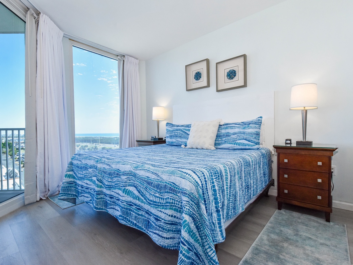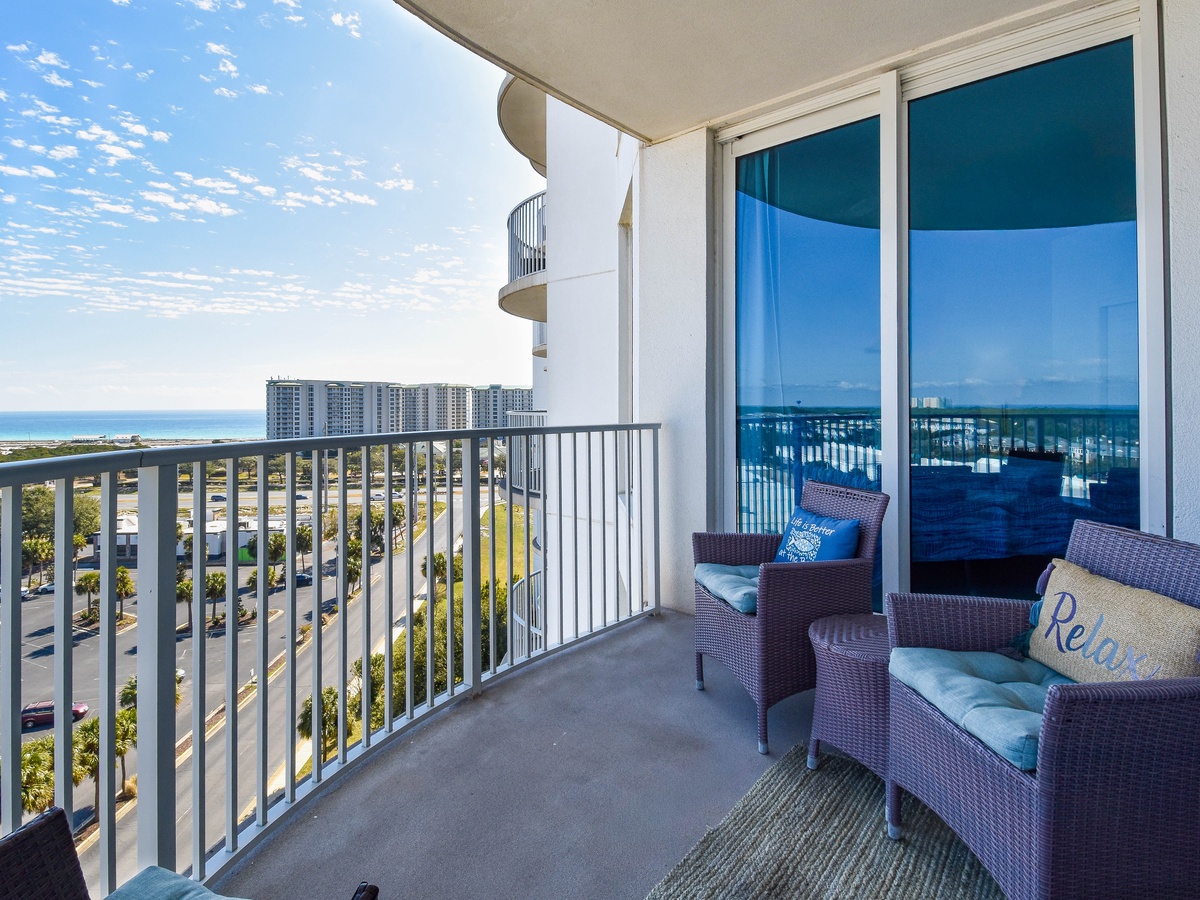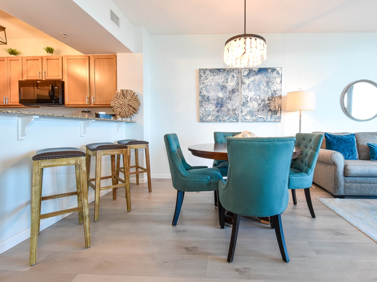 Welcome to The Palms of Destin 11004 Junior! Located on the tenth floor, this two-bedroom, two-bathroom condo offers relaxing views of Destin and includes all the comforts needed for a memorable beach getaway. The open-concept living area features a flat-screen TV and access to a private balcony, perfect for sipping morning coffee or unwinding after a day in the sun. The fully equipped kitchen includes granite countertops, a breakfast bar, and everything you need to prepare meals with ease, plus an adjacent dining area. The spacious primary bedroom features a king bed, large closet, and easy access to the attached bathroom with a tub/shower combo. The guest bedroom offers a full bed, cozy furnishings, making it ideal for families or friends traveling together. For added convenience this condo includes a washer and dryer, secure Wi-Fi and an additional bathroom with a walk-in shower. Come discover why The Palms of Destin 11004 is the perfect place to relax, recharge, and make lasting vacation memories!