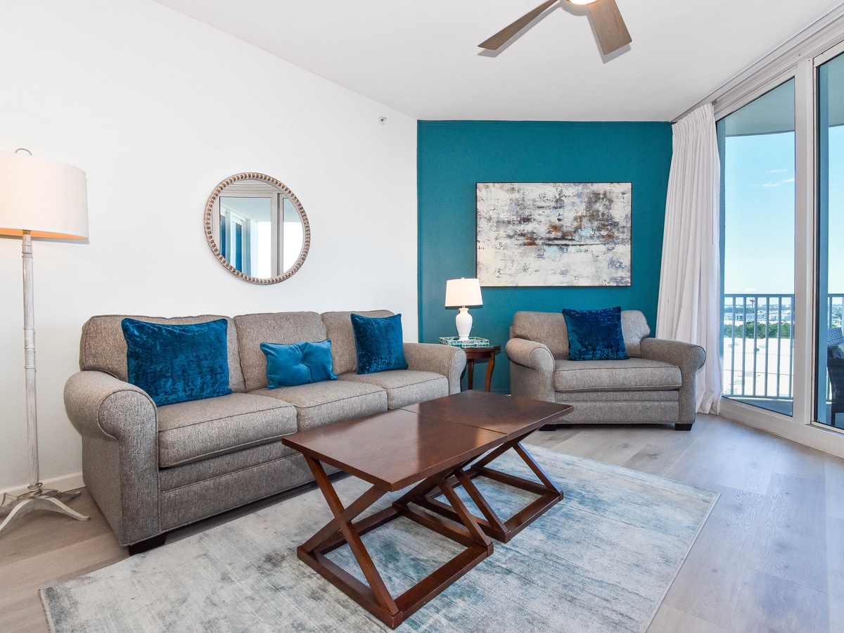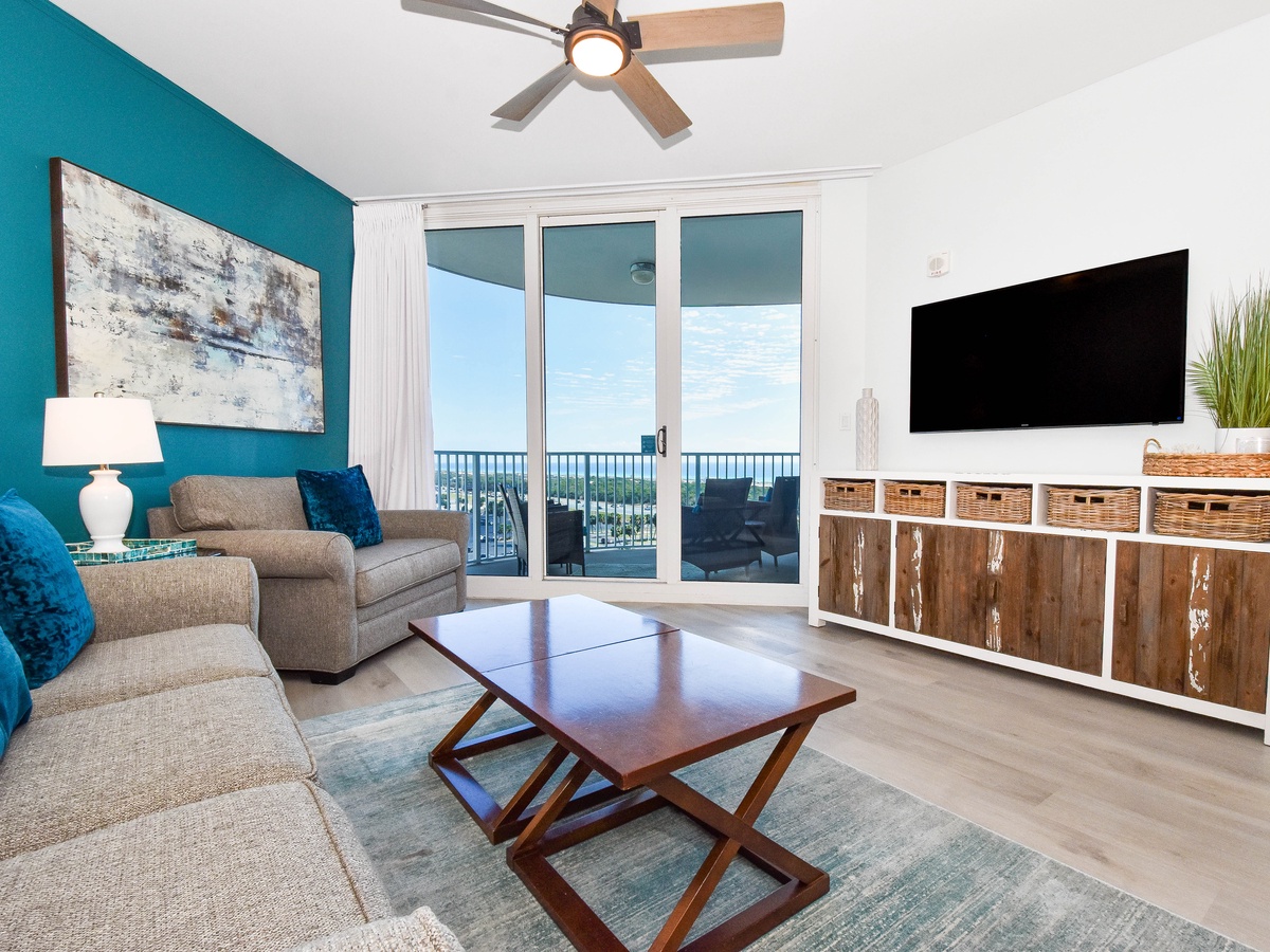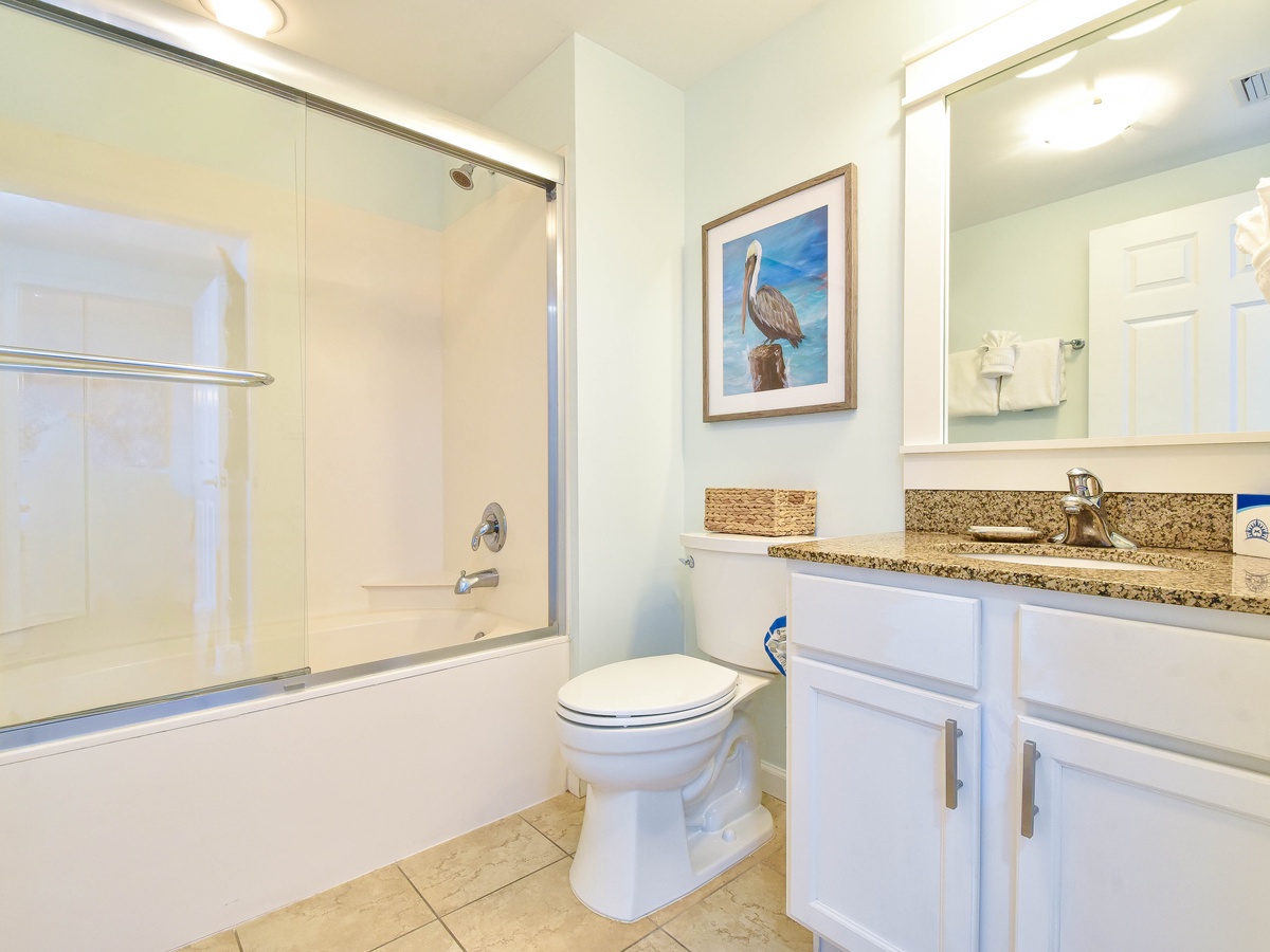 Welcome to The Palms of Destin 11004 Junior! Located on the tenth floor, this two-bedroom, two-bathroom condo offers relaxing views of Destin and includes all the comforts needed for a memorable beach getaway. The open-concept living area features a flat-screen TV and access to a private balcony, perfect for sipping morning coffee or unwinding after a day in the sun. The fully equipped kitchen includes granite countertops, a breakfast bar, and everything you need to prepare meals with ease, plus an adjacent dining area. The spacious primary bedroom features a king bed, large closet, and easy access to the attached bathroom with a tub/shower combo. The guest bedroom offers a full bed, cozy furnishings, making it ideal for families or friends traveling together. For added convenience this condo includes a washer and dryer, secure Wi-Fi and an additional bathroom with a walk-in shower. Come discover why The Palms of Destin 11004 is the perfect place to relax, recharge, and make lasting vacation memories!