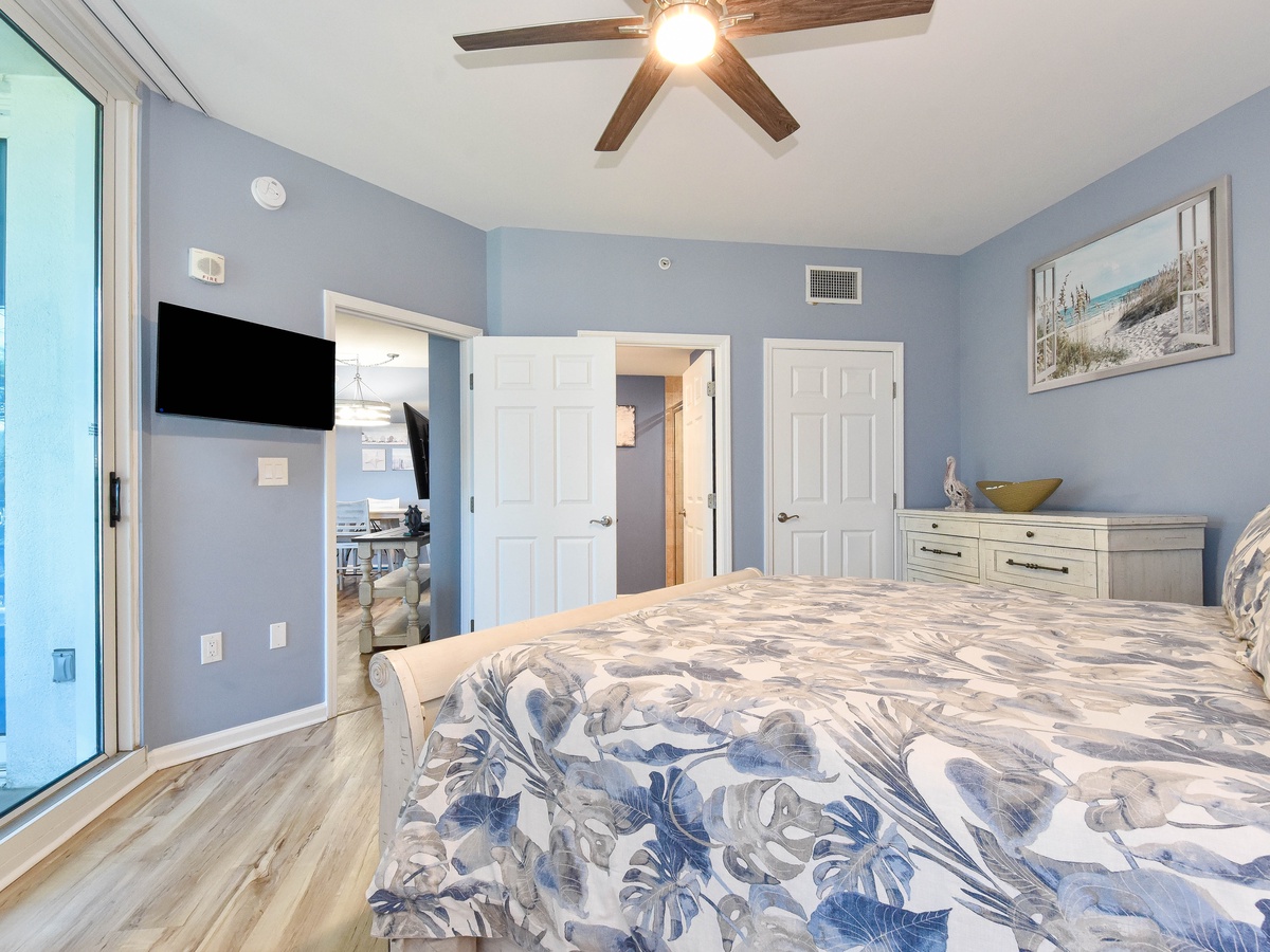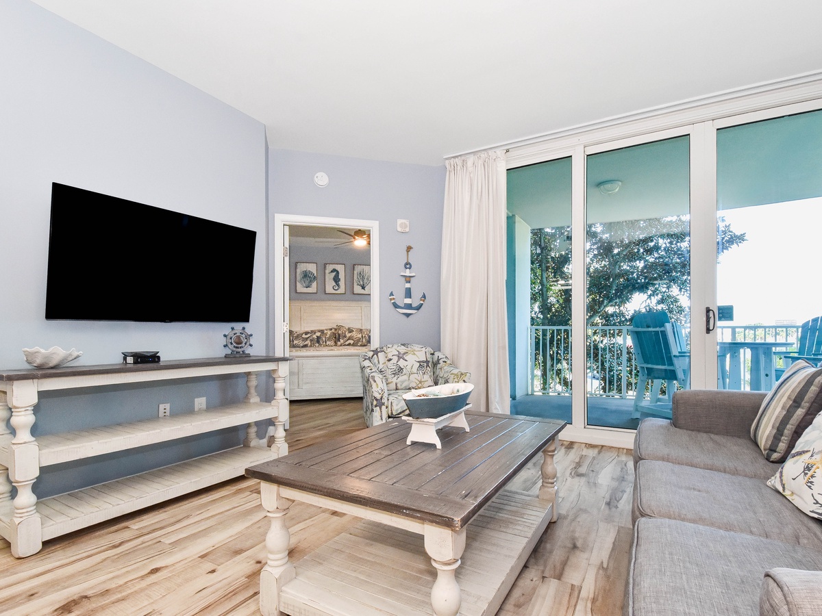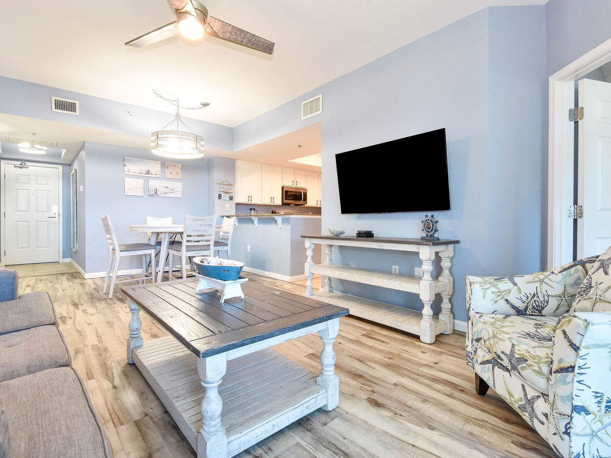 Unwind at The Palms of Destin 1216! Located on the second floor, this beautifully decorated two-bedroom, two-bathroom condo is the perfect retreat for your next beach getaway in the heart of Destin, Florida. The open-concept living and dining area features coastal décor, a wall-mounted flat-screen TV, queen sleeper sofa, and access to a private balcony that offers a quiet and relaxing spot to enjoy the warm Florida breeze. The fully equipped kitchen includes stainless steel appliances, ample counter space, and unique photography showcasing Destin’s local beauty, making it as charming as it is functional. The primary bedroom features a king bed, wall-mounted TV, and a private ensuite bathroom with a walk-in shower. The guest bedroom also has a king bed, wall-mounted TV, and access to the balcony. Just steps away, the second full bathroom features a tub/shower combo. For added convenience, the condo includes a washer and dryer, secure Wi-Fi, and all the essentials to ensure a comfortable and enjoyable stay. Come discover why The Palms of Destin 1216 is the perfect place to relax, recharge, and make lasting vacation memories!