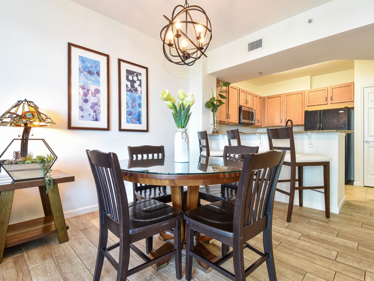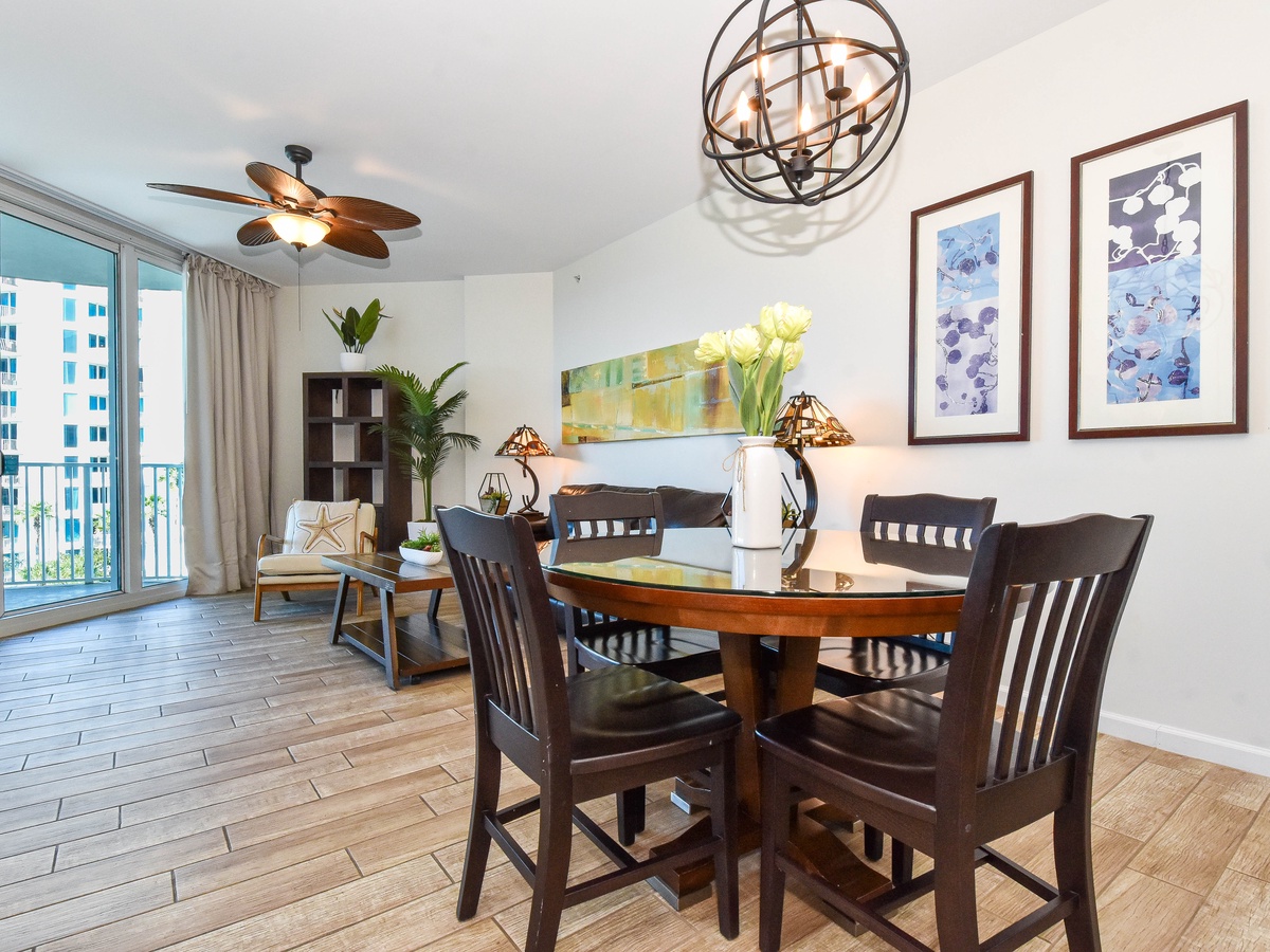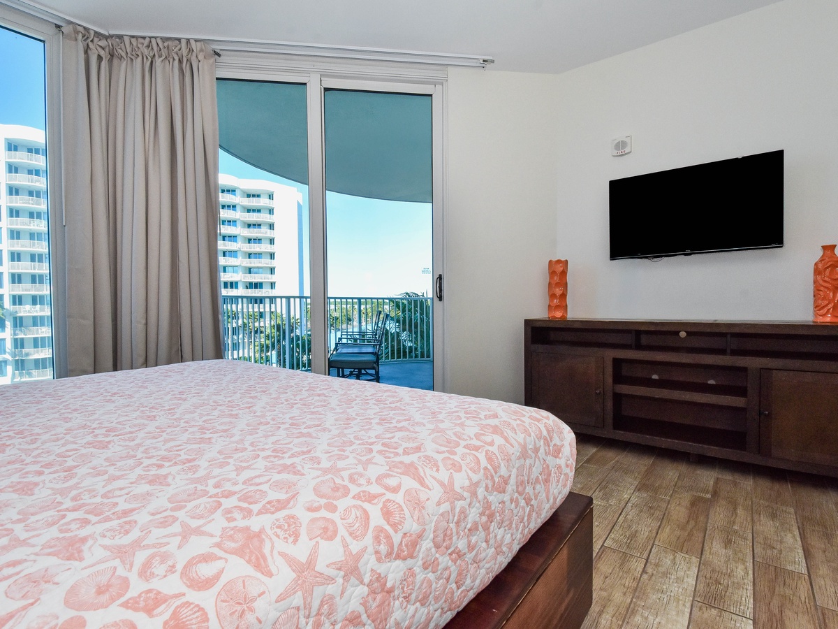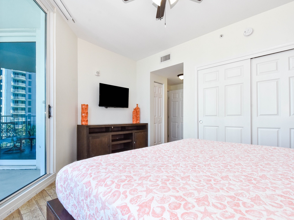Discover The Palms of Destin 1511 Junior! This two-bedroom, two-bathroom condo is located on the fifth floor of The Palms of Destin Resort and offers the perfect blend of comfort, convenience, and resort-style living. With an open-concept living and dining area, a fully equipped kitchen, and an inviting balcony with resort and lagoon pool views, this vacation rental is ideal for families or couples looking for a fun and relaxing Destin getaway. In the living area, you’ll find cozy seating, a flat-screen TV, and a queen sleeper sofa for additional sleeping space. The primary bedroom features rustic wood accents, a king bed, flat-screen TV, and a private bathroom with a tub/shower combo, creating a perfect place to unwind after a day in the sun. The guest bedroom is furnished with a full-over-full bunk bed and an en suite bathroom with a walk-in shower, making it perfect for kids or extra guests. For added convenience, the condo is also equipped with a washer and dryer. Make unforgettable memories at The Palms of Destin 1511, your home away from home in the heart of Destin.
