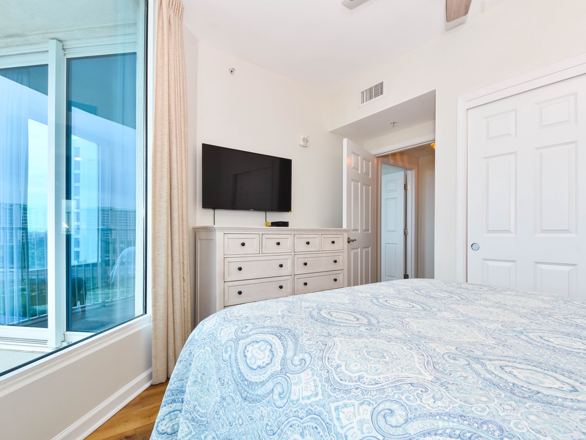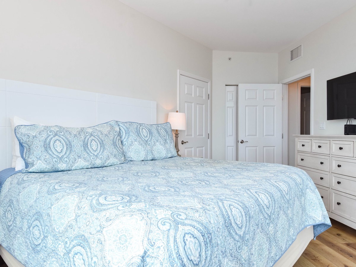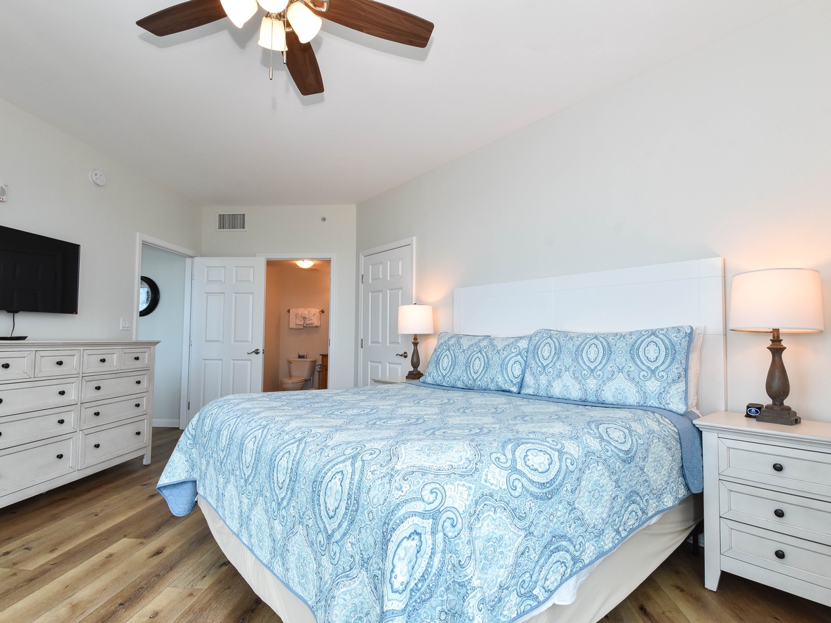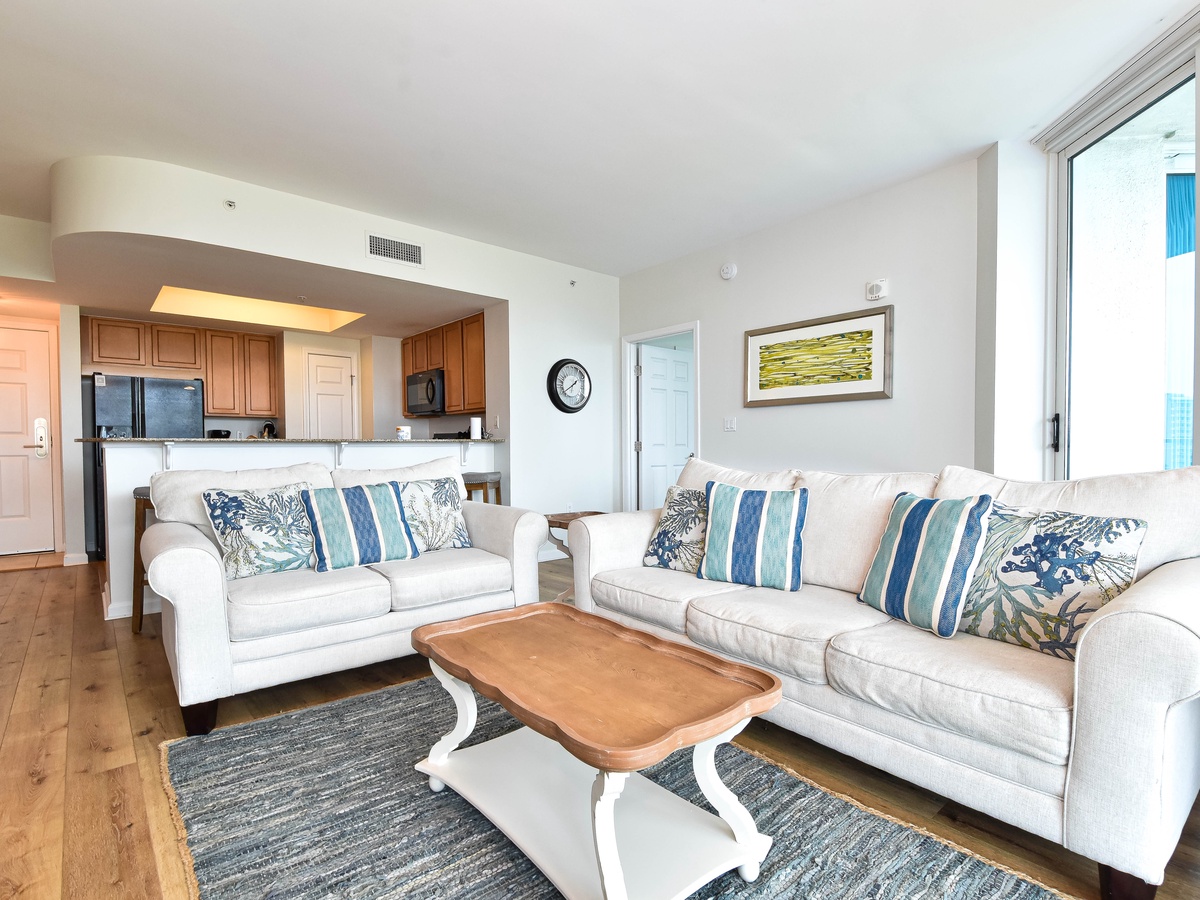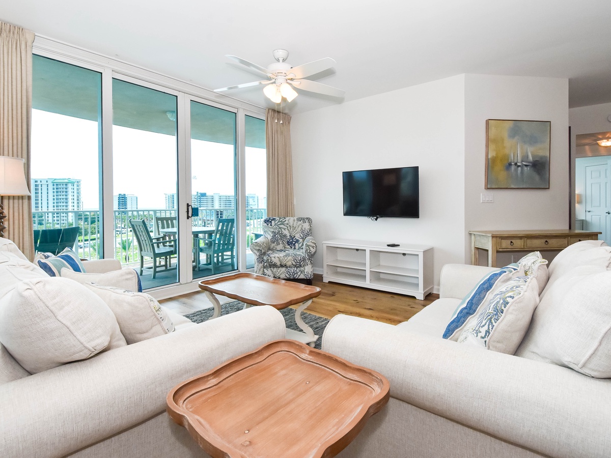 Welcome to The Palms of Destin 1617, your perfect escape in the heart of Destin. This beautiful three-bedroom two-bath condo sits on the sixth floor, offering gorgeous southern views of the gulf and the resort’s signature lagoon pool. Whether you're sipping your morning coffee on the private balcony or winding down after a day in the sun, this condo provides the ideal setting for a relaxing beach vacation on the Emerald Coast. Step inside to discover a spacious, open-concept layout designed for both comfort and connection. The fully equipped kitchen features modern appliances and all the essentials, perfect for whipping up a quick snack or preparing a delicious home-cooked meal. Gather around the dining table that seats six, with additional seating for four at the breakfast bar, plenty of room for the whole crew. The airy living area is made for laid-back beach vibes, complete with plush seating, a large flat-screen TV, and direct balcony access so you can let the coastal breeze flow in. The primary suite is a true retreat with a king bed, private balcony access, flat-screen TV, and an en-suite bathroom with a tub/shower combo. The first guest bedroom also features a king bed, while the third bedroom offers a cozy queen. Both guest rooms include TVs, share access to the second full bathroom, and have balcony access for added enjoyment. For added convenience there is a sleeper sofa in the living area, in-house laundry, and secure WIFI, perfect for longer stays or remote work while vacationing. When you’re not relaxing in your condo, take full advantage of everything The Palms of Destin Resort has to offer, including the lagoon pool, on-site dining, fitness center, and seasonal shuttle service to the beach. Just minutes from Destin’s top attractions, shopping, restaurants, and of course, the sugar-white sands and crystal-clear waters of the Gulf, this is your home base for unforgettable beach memories. The Palms of Destin 1617 has everything you need for the ultimate Destin beach getaway. Book your escape today!