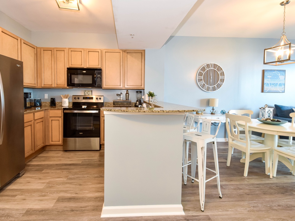 To ensure comfort and convenience, we provide dishwasher detergent and laundry detergent. This condo has a Keurig, with K-Cups provided.