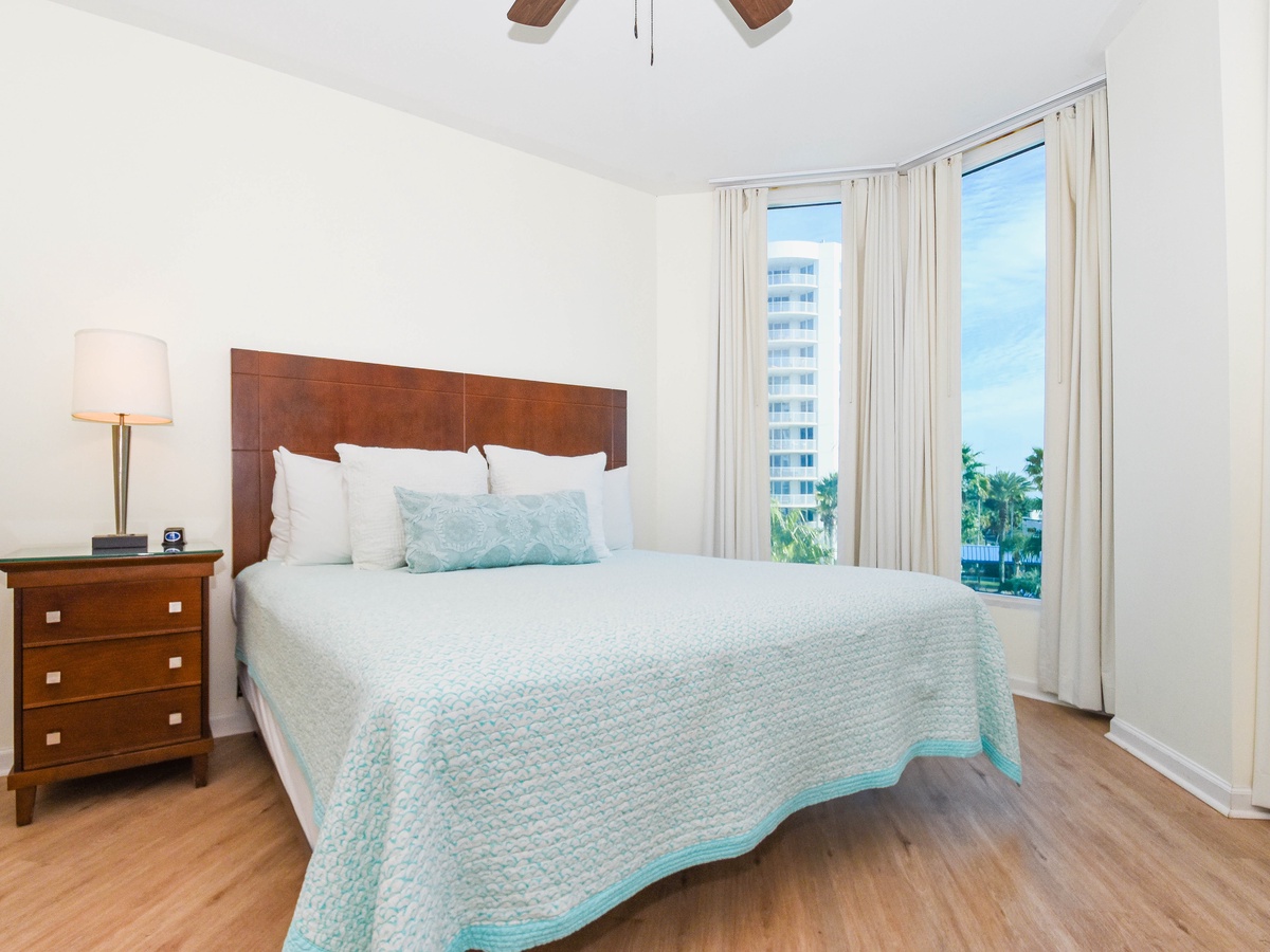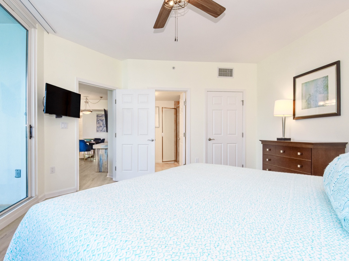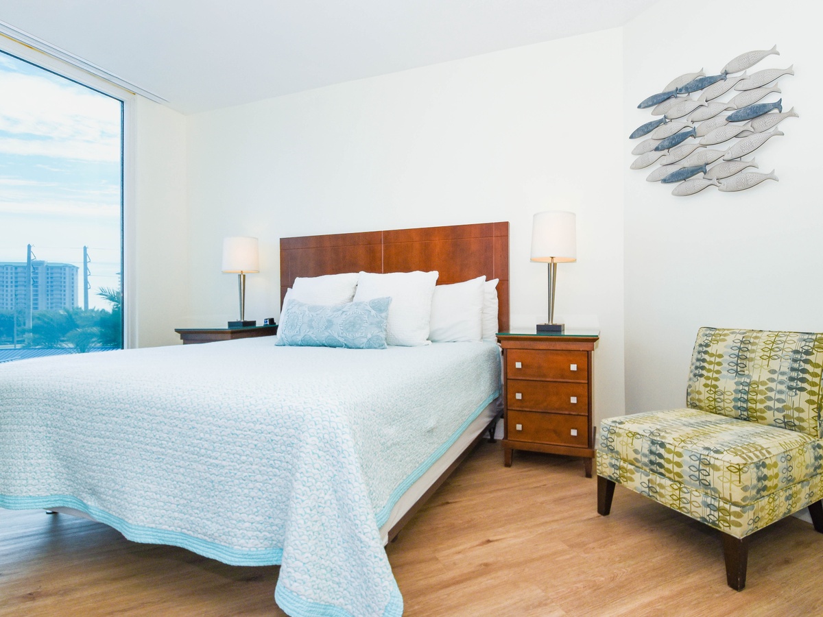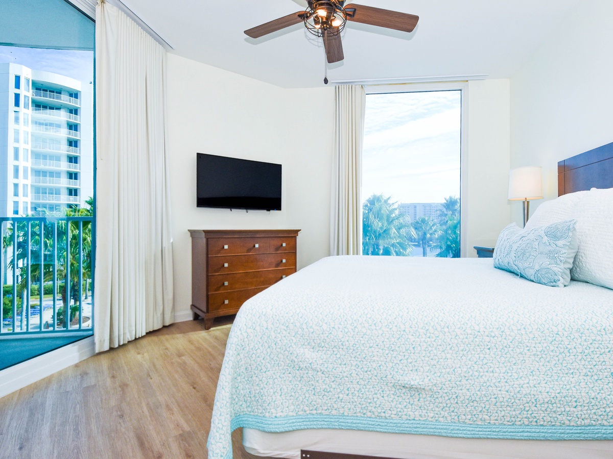 Find your perfect Destin vacation rental at The Palms of Destin 2415. This two-bedroom, two-bath condo offers a spacious balcony with stunning views of Destin’s largest resort-style pool. The open-concept living and dining area features a flat-screen TV, a dining table for four, and a breakfast bar with seating for two. A fully equipped kitchen provides everything you need to prepare quick beach snacks or delicious home-cooked meals. Both spacious king bedrooms include flat-screen TVs and balcony access, while a sleeper sofa in the living room allows this family-friendly condo to comfortably accommodate up to six guests. Enjoy added conveniences like an in-unit washer and dryer, secure Wi-Fi, and full access to premium resort amenities, including Destin’s largest resort lagoon pool, a fitness center, pickleball and more. Book your Destin beach getaway at The Palms of Destin 2415 today and experience comfort, convenience, and coastal relaxation—just minutes from Destin’s white-sand beaches and popular attractions.