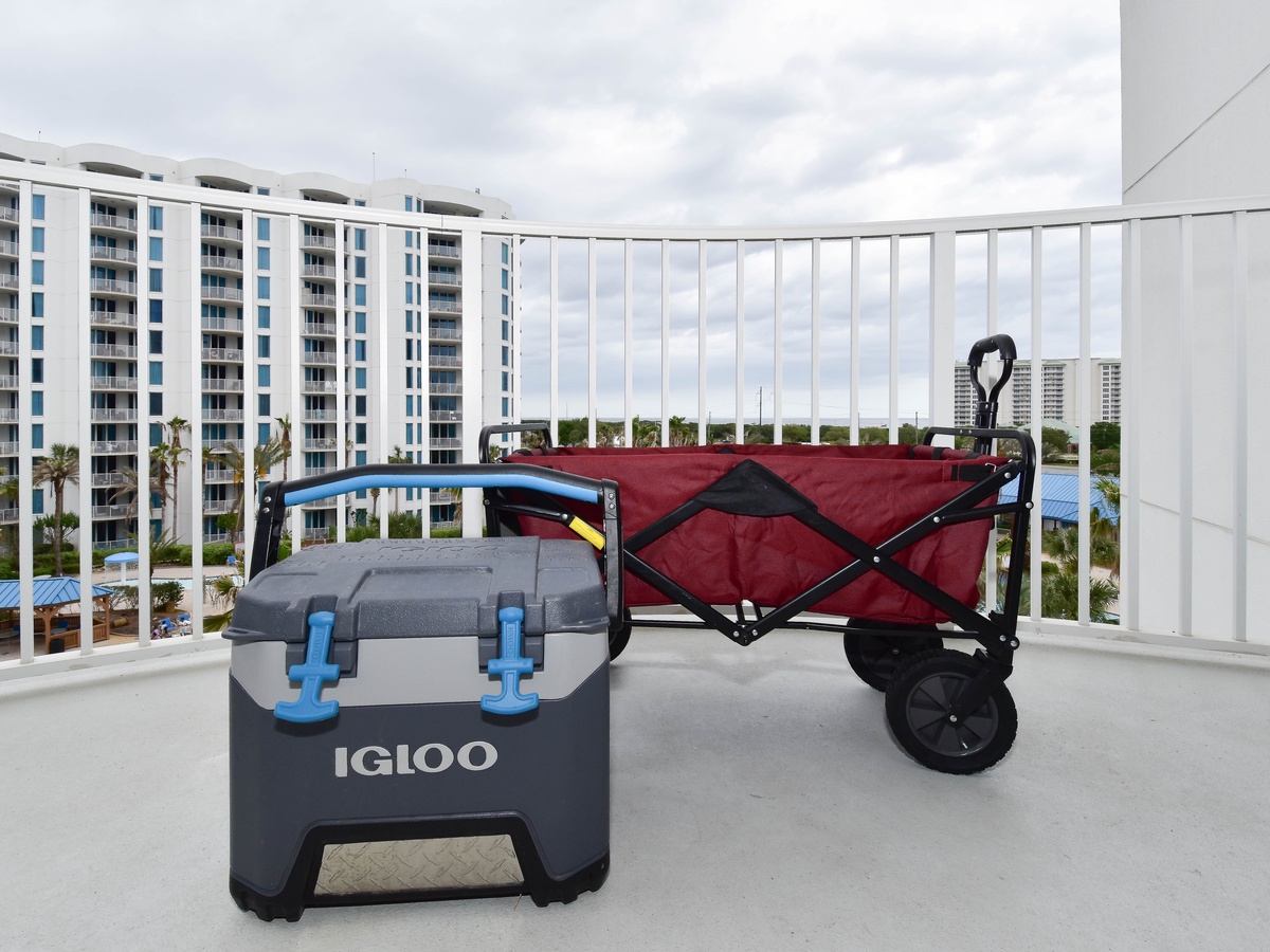 Are there beach chairs included in this unit? 1 picture shows a cooler and wagon, but chairs or anything else for beach?
