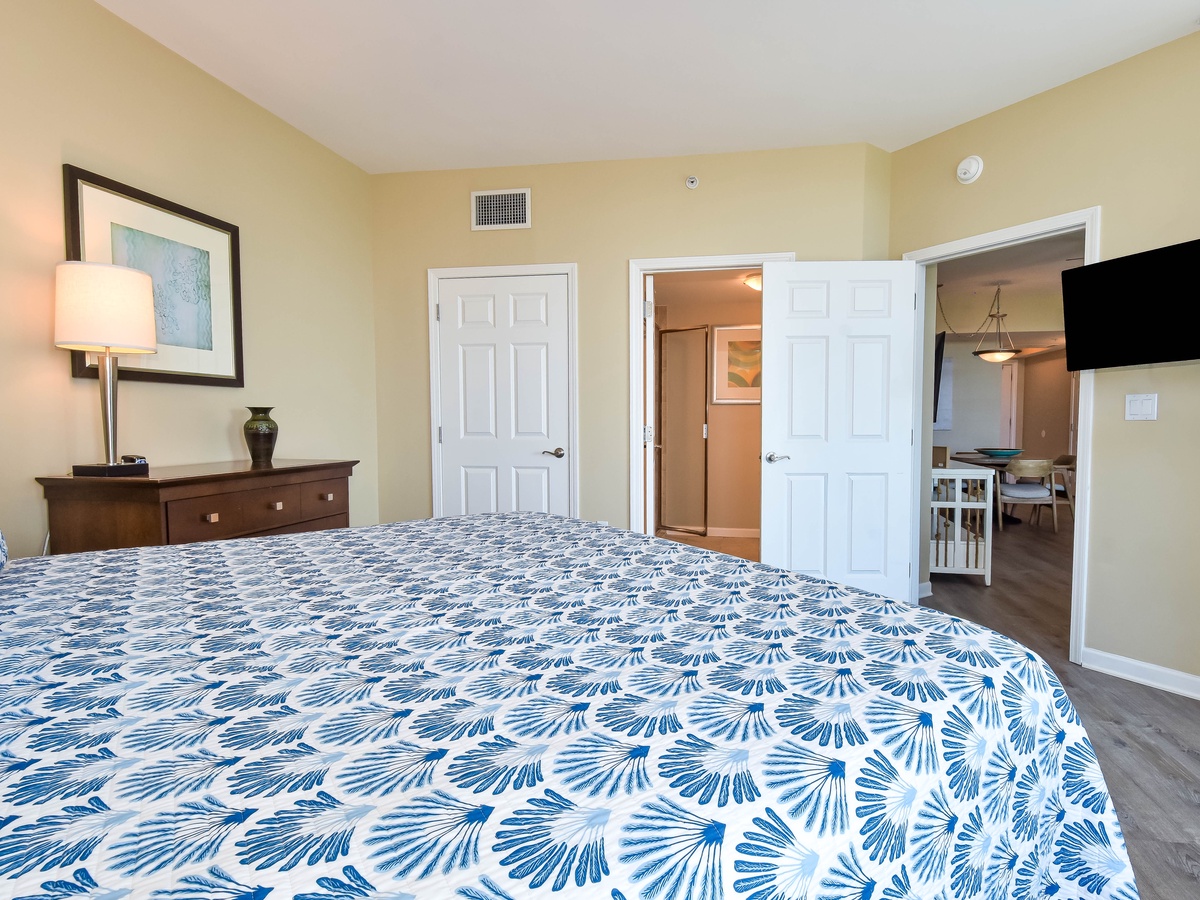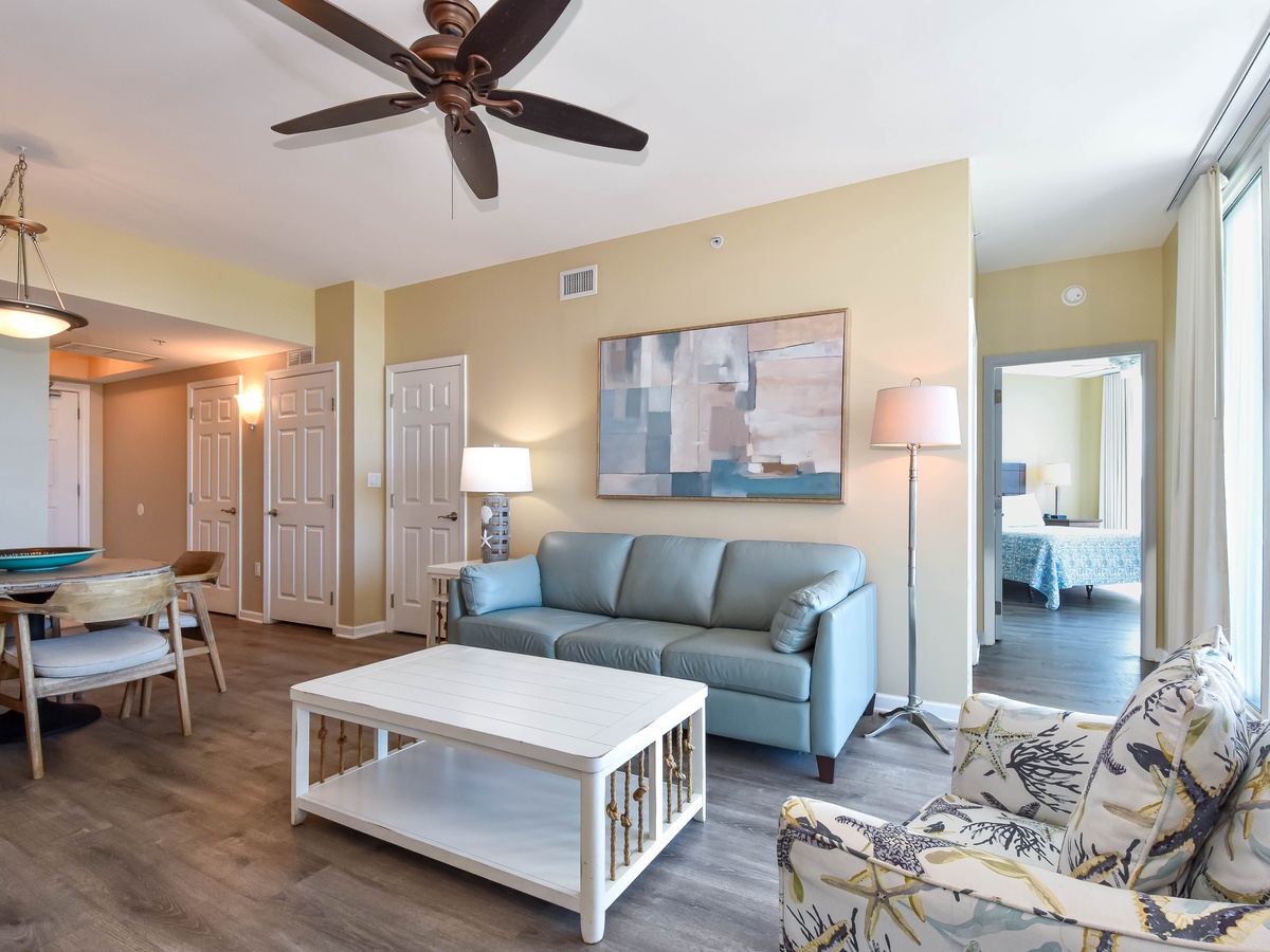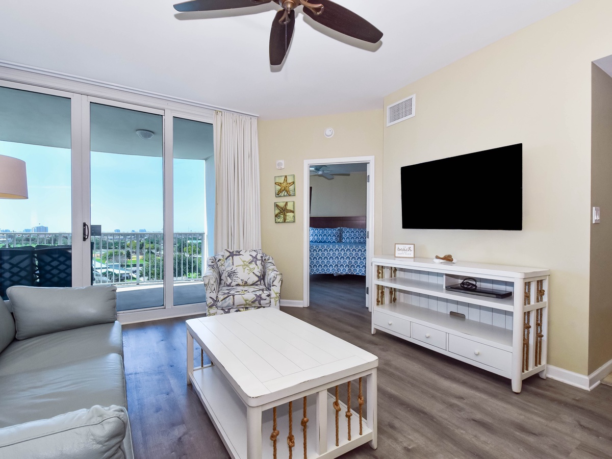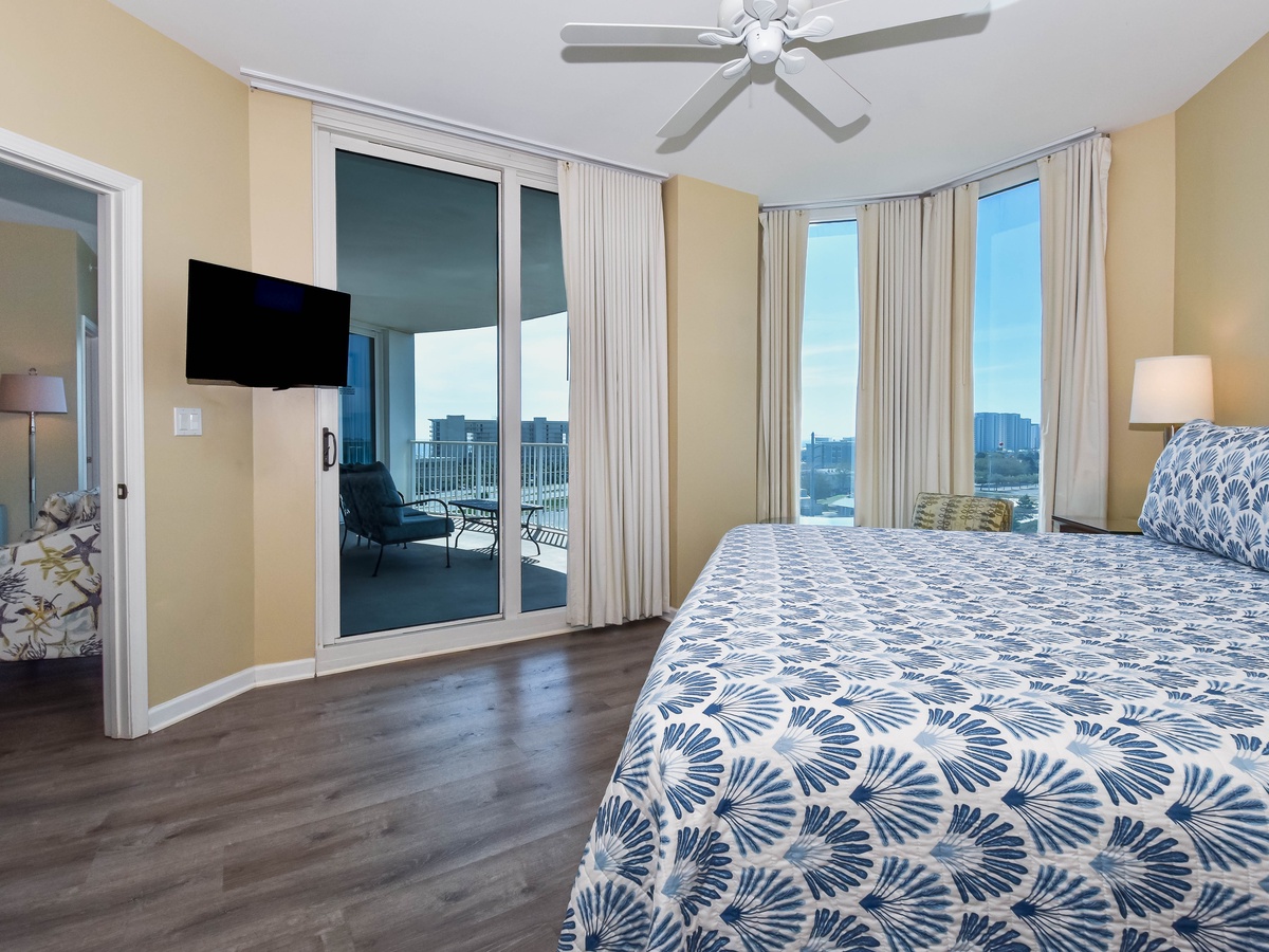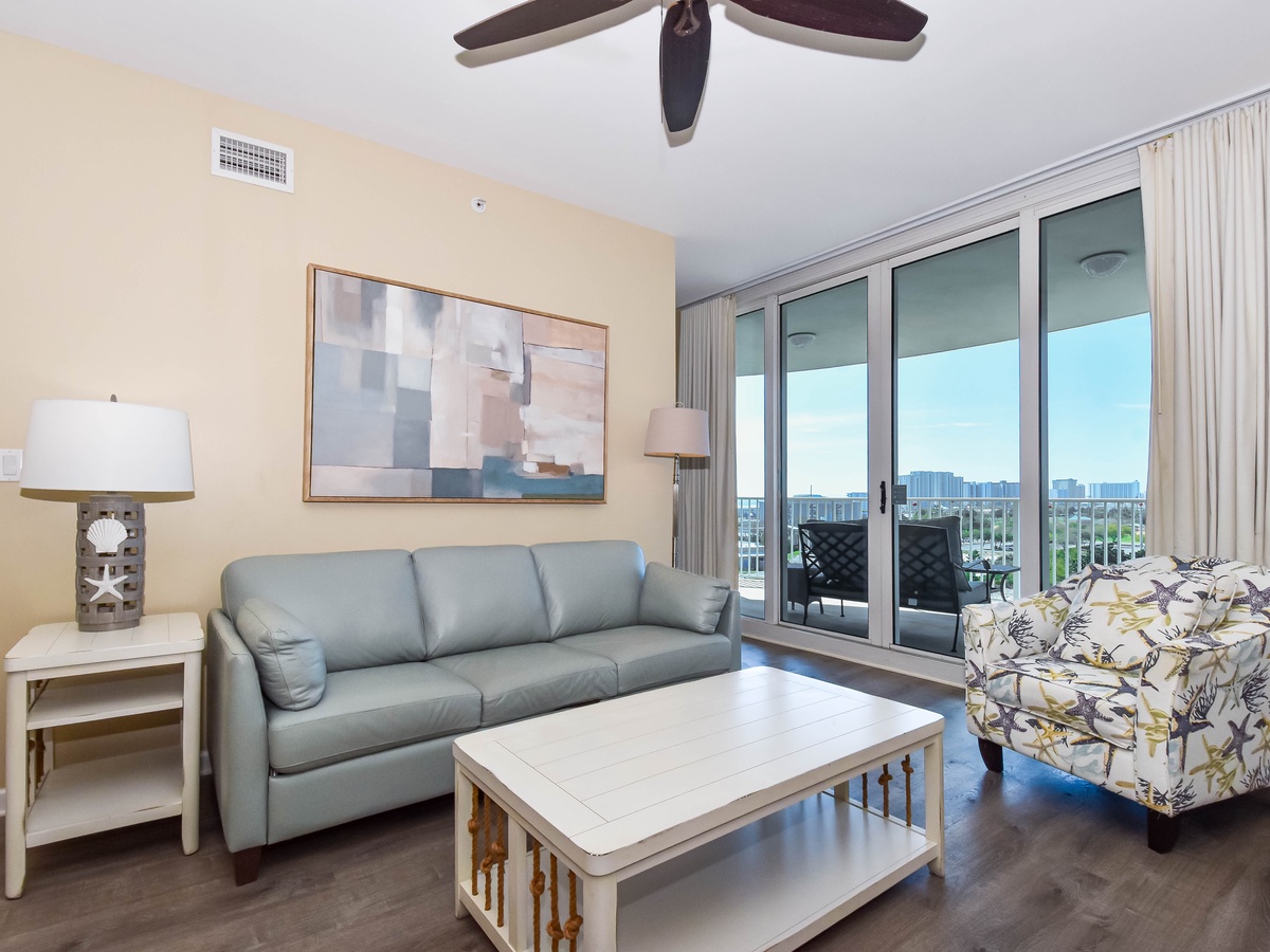 Welcome to The Palms of Destin 2816, a coastal retreat featuring two bedrooms and two bathrooms, comfortably accommodating up to six guests. Step out onto the private southwest-facing balcony and unwind as Destin’s famous sunsets paint the evening sky with breathtaking colors, creating the perfect backdrop for relaxing after a day at the beach. Inside, the open living area is designed for comfort, whether you are enjoying a movie night on the flat-screen TV, catching up with family, or gathering for a fun game night. The fully equipped kitchen offers everything you need to prepare your favorite meals with ease, along with seating for four at the dining table and additional space for three at the breakfast bar. Relax in the spacious primary bedroom featuring a king bed, direct balcony access, a flat-screen TV, and an attached bathroom with a walk-in shower. The guest bedroom also offers a king bed, flat-screen TV, and balcony access, providing a relaxing retreat for additional guests plus there is a sleeper sofa in the living area for extra sleeping space. For added convenience, the condo also features a hall bathroom with a tub/shower combination, in-unit laundry, and secure Wi-Fi. Book your Destin beach vacation at The Palms of Destin 2816 and experience the perfect blend of comfort, resort amenities, and beautiful sunsets.