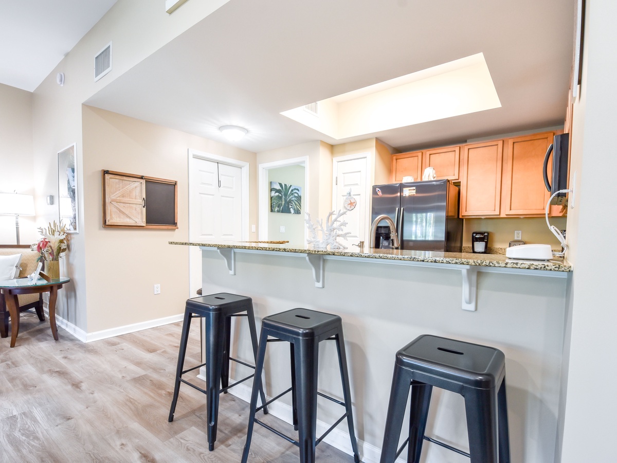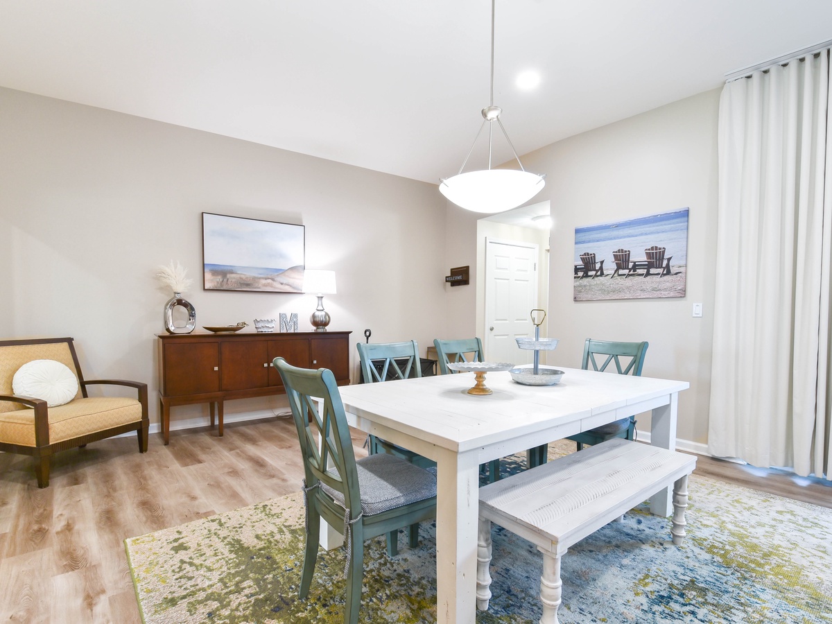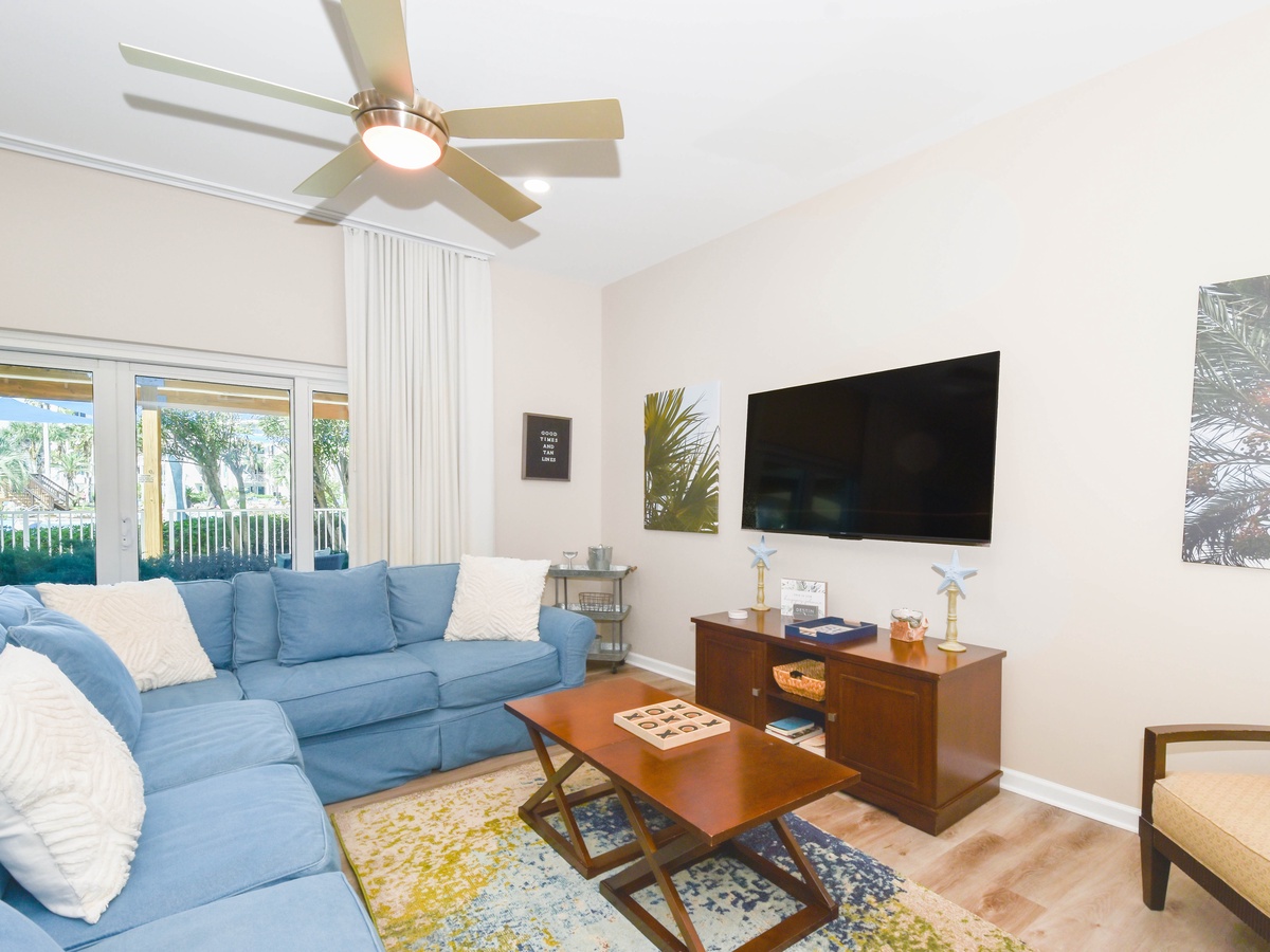 Welcome to The Palms of Destin Villa 3104, where coastal charm meets effortless comfort. This cozy ground-floor retreat is perfect for families and guests seeking convenience without sacrificing space. Skip the elevators and enjoy easy, breezy access to the sparkling pool, just steps from your door. Inside, you’ll find a fully equipped kitchen ready for your favorite meals. Gather for dinner at the cozy table for six or grab a seat at the bar with space for three more. Whether it’s movie night, game night, or simply relaxing after a sun-soaked day, the spacious living area is made for making memories. Unwind in the primary suite, complete with a king bed, flat-screen TV, and a private bathroom with a tub/shower combo. A second king bedroom, plus a sleeper sofa in the living room, allows this villa to comfortably sleep up to six guests. Additional amenities include a second hallway bathroom with a walk-in shower, in-unit washer and dryer, and secure WiFi, everything you need for a stress-free beach escape. Your poolside getaway starts here at The Palms of Destin 3104.